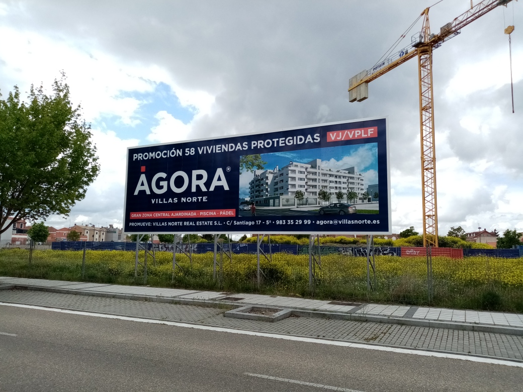 VILLAS NORTE REAL ESTATE, S.L. con oficina comercial en calle Santiago 17-5ª planta y promotora de 58 viviendas protegidas en Villas Norte, les comunica que ha colocado en la parcela 5A-10A la valla promocional del edificio que próximamente empezará a comercializarse.
