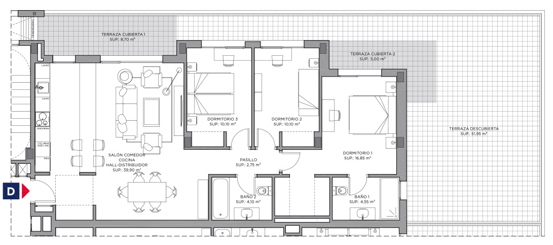 • Hall-Salón-Comedor-Cocina: 39,90 m²